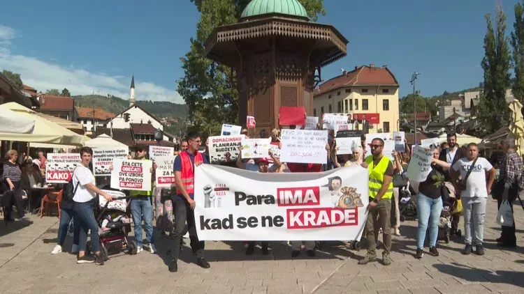 Nekoliko okupljenih mladih prošetalo je danas Baščaršijom tražeći da se ispune njihovi zahtjevi. Okupljeni su nosili transparente na kojim je pisalo: “Hoće li neko iz Vlade ponuditi neko rješenje ili čekate da nam protesti dosade?”, “Para ima kad se ne krade”, “Draga Vlado KS, vi ste danas ali mogli bi biti jučer”.