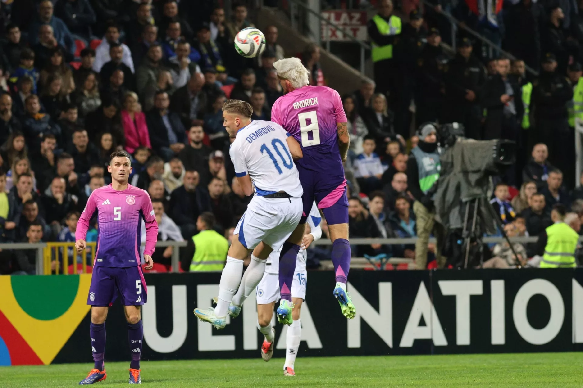 Opasno je bilo pred golom Vasilja i u 45. minuti. Ubacio je Kimmich iz kornera, Wirtz ostao sam na prvoj stativi, a srećom po BiH lopta je otišla preko gola.