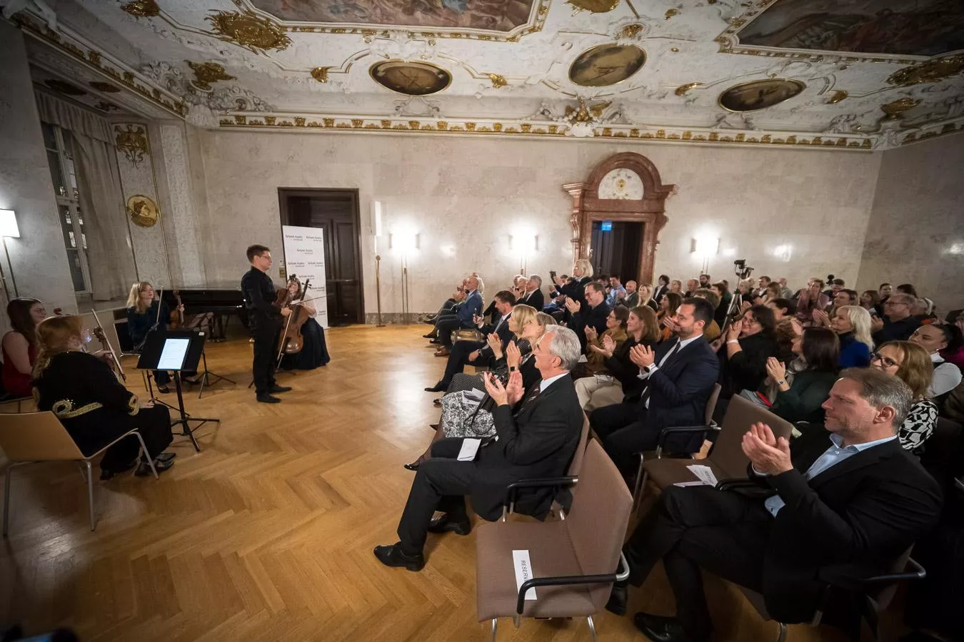 Pored doskorašnje ambasadorice Austrije u Sarajevu Ulrike Hartman, kao počasnog gosta konceta, više od stotinu zvanica iz diplomatske i akademske zajednice, austrijskih institucija i ljudi porijeklom s naših prostora imalo je priliku čuti poznata djela Wolfganga Amadeusa Mozarta i Maxa Brucha koje su mladi stipendisti Marko Marić, Borna Šestak i Lejla Komar koji studiraju u Istočnom Sarajevu, Mostaru, Kragujevcu i Beogradu, izvodili u pratnji bečkog CIPRA kvarteta.