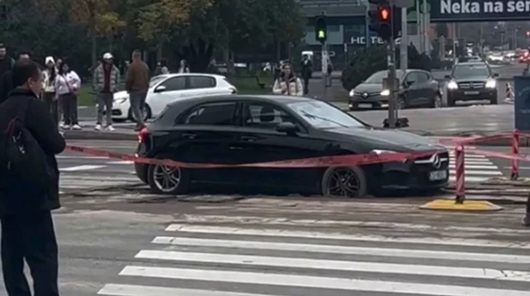 U rupi na križanju Savske i Ulice grada Vukovara prvo se zaglavio taksi, a zatim i Mercedes.