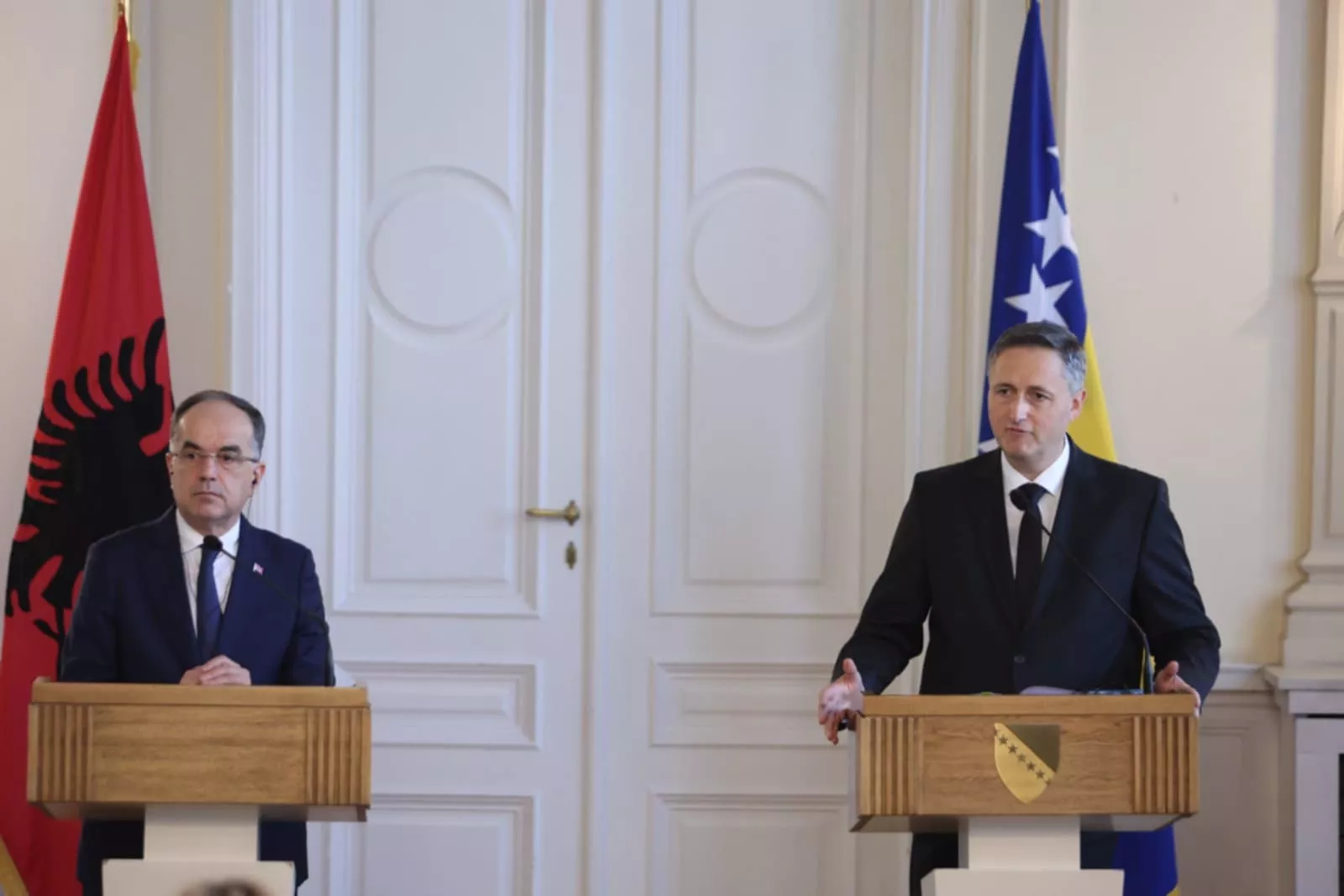 (Patria) - Predsjednik Albanije Bajram Begaj održao je sastanak s članovima Predsjedništva BiH nakon kojeg se obratio na konferencija za medije zajedno sa predsjedavajućim Predsjedništva BiH Denisom Bećirovićem.
