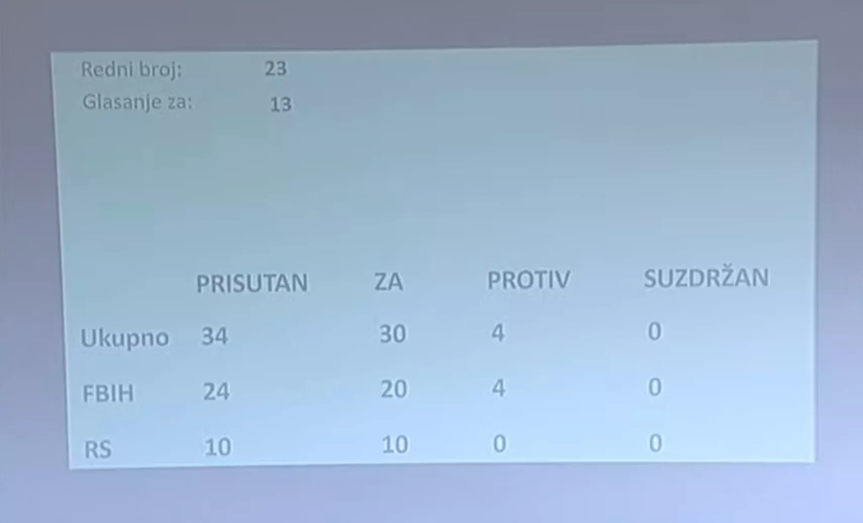 Inicijativu je od 34 zastupnika prisutna na glasanju podržalo njih 30, dok su četiri bila protiv.