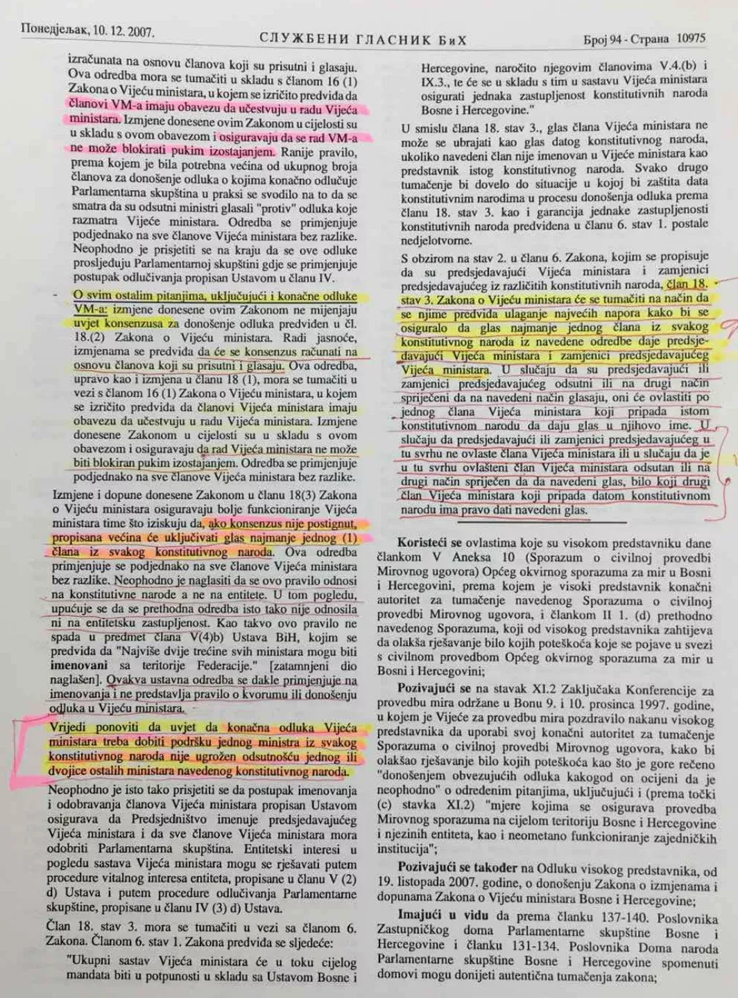 No, odluke koje odmah stupaju na snagu, Vijeće ministara donosi tako što mora biti prosta većina, a u okviru proste većine mora biti najmanje po jedan glas iz svih konstitutivnih naroda.
