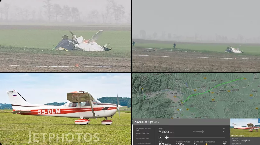 #AccidenteAéreo mortal de #Cessna172 (S5-DLM) del "Letalski Center Maribor" en #Gančani #Eslovenia 🇸🇮. Los 4 pax murieron. Despegaron de #Maribor (MBX/LJMB). Su destino eraMurska Sobota (LJMS). La predicción meteorológica daba engelamiento y poca visibilidad. 4 muertos. 17-11-24 pic.twitter.com/oeVTpwFw16
