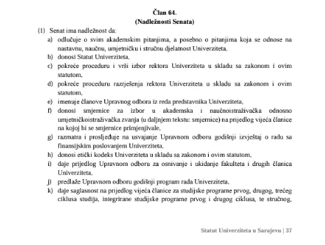 Na sutrašnjoj sjednici Senat UNSA koji broji 46 članova jasno će se očitovati o rješenju Ministarstva kojim bi se trebalo staviti van snage više od 20 odluka koje je Senat donio u procesu konkursne procedure izbora rektora UNSA. A Statut UNSA precizira ko bira i ko razrješava rektora.