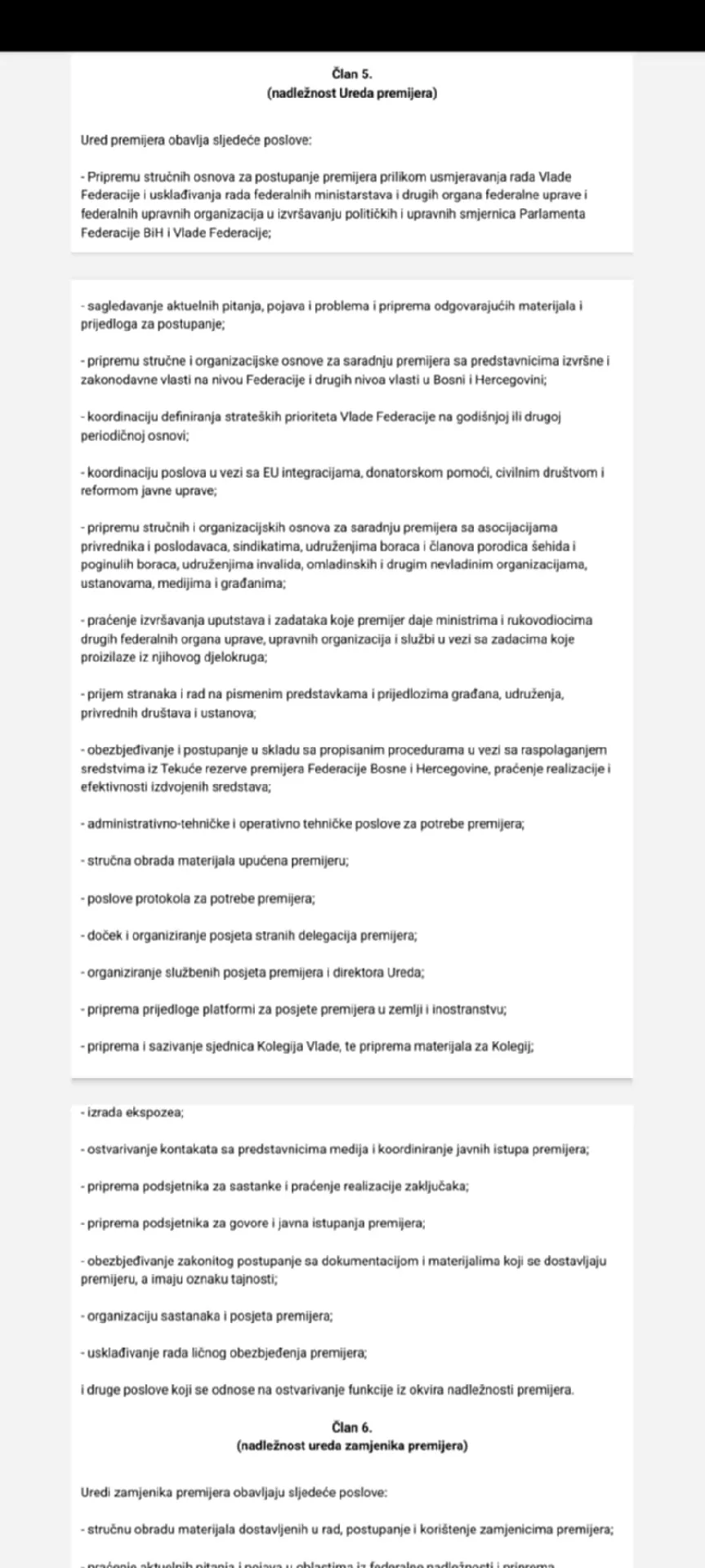 (Patria) - Vlada Federacije Bosne i Hercegovine na sjednici 19. novembra donijela je Uredbu o Uredu premijera/predsjednika Vlade i Ureda dva zamjenika premijera FBiH.