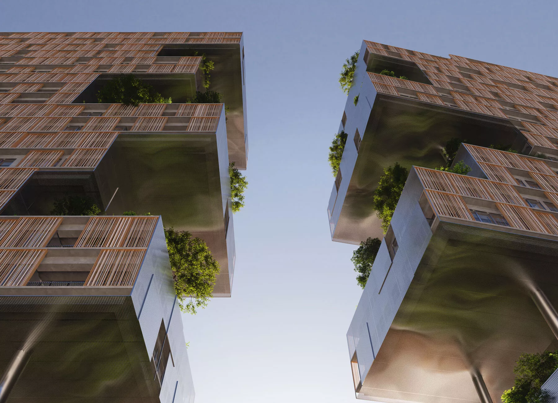 OODA je zamislila pročelje zgrade u zemljanim tonovima koji se uklapaju u vizuelni kontinuitet grada, a koji bi trebali biti napravljeni s perforiranim metalnim pločama koje pružaju privatnost svima onima koji borave untar Ndarje.