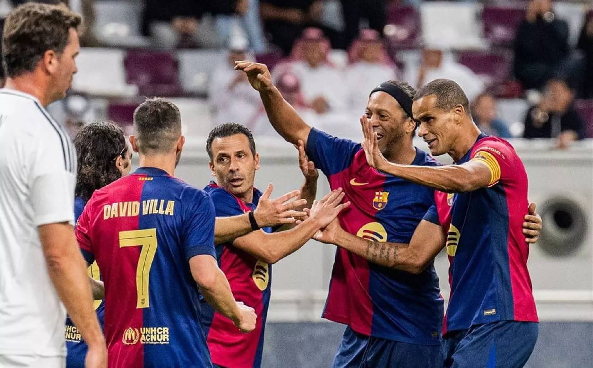 U utakmici punoj uzbuđenja, legende katalonskog kluba povele su golom Juana Pabla Sorina u 8. minuti, dok je gol Ronaldinha poduplao vodstvo Barcelone.
