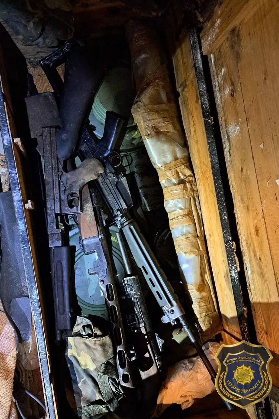 (Patria) - Policijski službenici Federalne uprave policije (FUP), poduzimajući mjere i radnje iz svoje nadležnosti, došli su danas do informacija da se na području Čapljine (Gabela) u jednom objektu nalazi veća količina vojnog naoružanja.