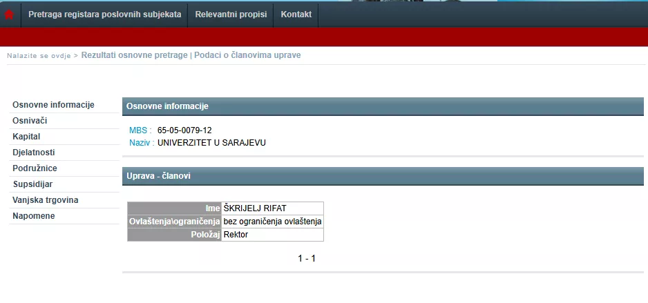 Inače, Općinski sud u Sarajevu odbio je izvršiti upis rektora Tarika Zaimovića u sudski registar iako je on dužnost preuzeo 1. oktobra. U sudskom registru i dalje je ime bivšeg rektora Rifata Škrijelja.