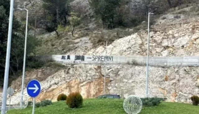 Grafit s natpisom “Za dom spremni” prijavljen je nadležnim institucijama, a po dolasku na mjesto događaja policija je zatekla samo drugi dio natpisa – “Spremni”, dok je prvi dio bio prekriven crnim sprejom.