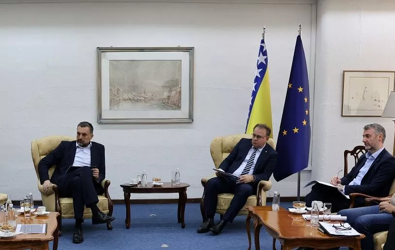 (Patria) - Premijer Federacije Bosne i Hercegovine Nermin Nikšić, ministar vanjskih poslova BiH Elmedin Konaković i ministar komunikacija i prometa BiH Edin Forto, održali su danas u sjedištu Vlade Federacije BiH u Sarajevu sastanak sa Upravom „BH Telecoma“.