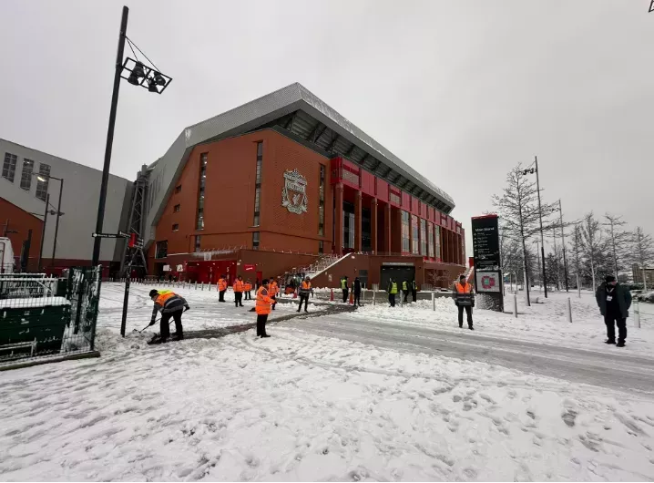 Naime, snijeg je okovao Liverpool, no ulice i sam travnjak stadiona su očišćene na vrijeme, te navijači sigurno mogu doći do stadiona, što je bio glavni uslov za odigravanje susreta.