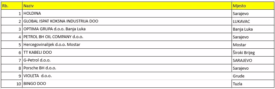 Sisecam Soda Lukavac (SSL) pala je sa druge na četvrtu, dok je Aluminij industrija napredovala za dvije pozicije na peto mjesto.