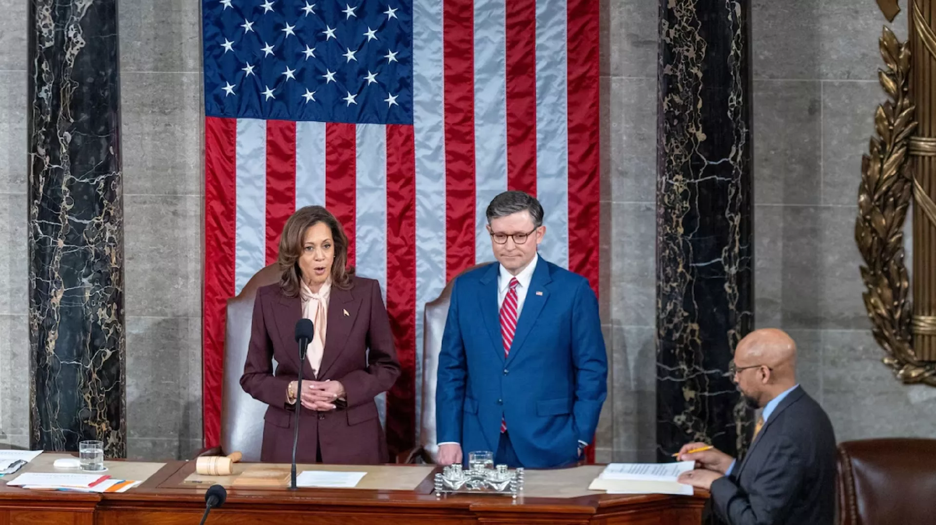 "Predsjedavajući sjednicu proglašava okončanom", objavila je predsjedavajuća zajsedanjem, američka potpredsjednica Kamala Harris, koja je poražena u izbornoj trci s izabranim predsjednikom Trumpom.