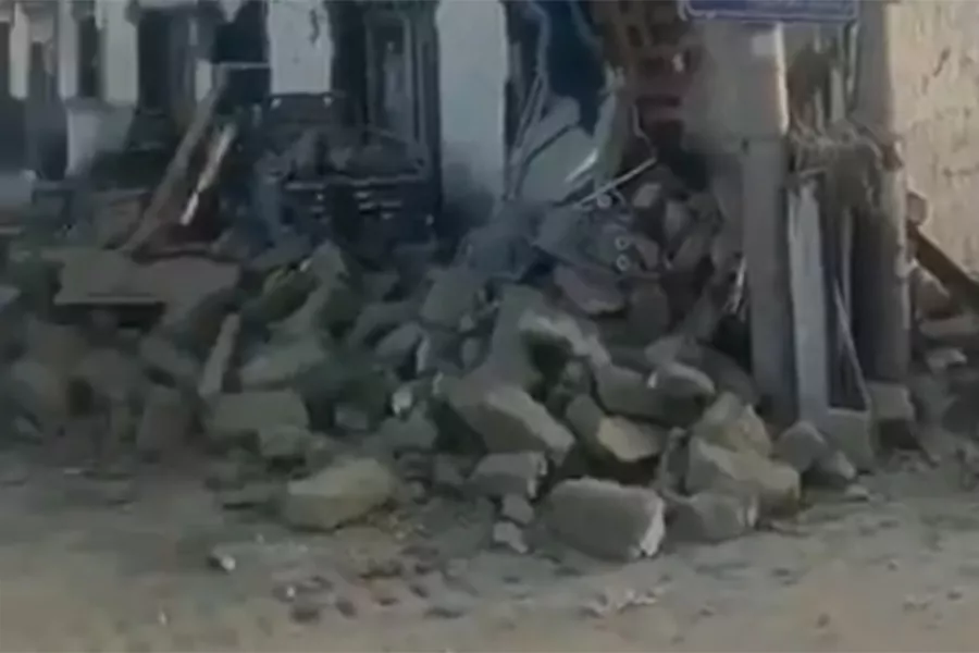 Scenes of destruction and houses collapsed in Tingri, Tibet after today's earthquake measuring 6.8 on the Richter scale.