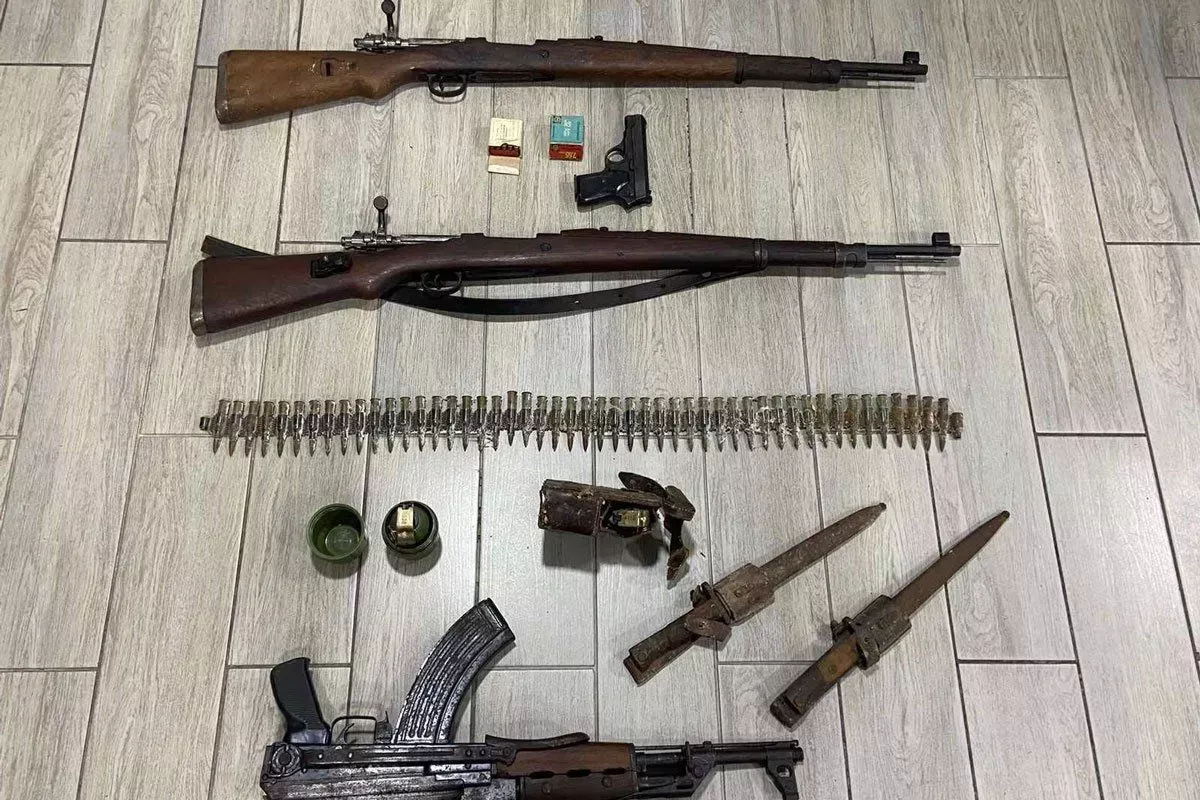Pretresom kuće i pomoćnih objekata policija je pronašla tri vojne puške, dvije ručne bombe, dva bajoneta i pištolj.