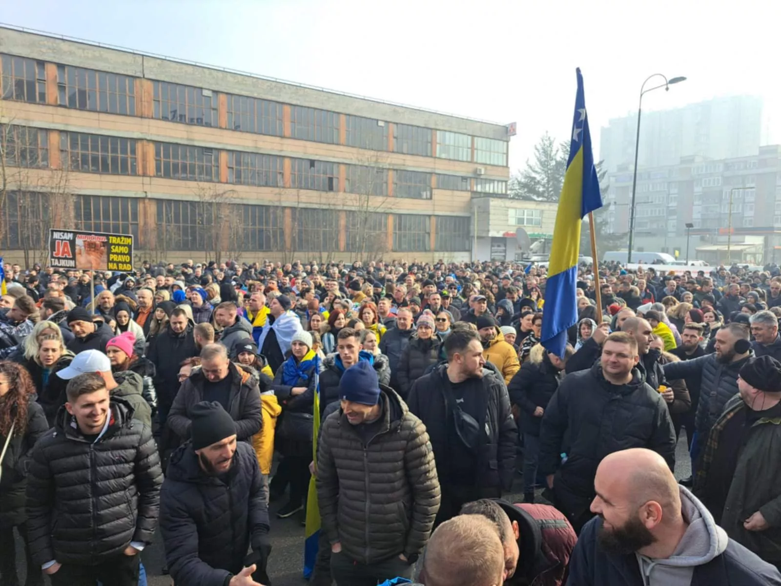 (Patria) - Pred zgradom Vlade Federacije Bosne i Hercegovine okupilo se nekoliko stotina privrednika iz FBiH, a zbog odluke Vlade FBiH o minimalnoj plaći od 1.000 KM, bez ikakvih mjera za rasterećenje privrede. Odluka je na snazi od 1. januara. Blokiran je i saobraćaj u ovoj ulici. Vlasnici obrta, preduzeća stigli su iz Sarajeva, Zenice, Gračanice, Kalesije...