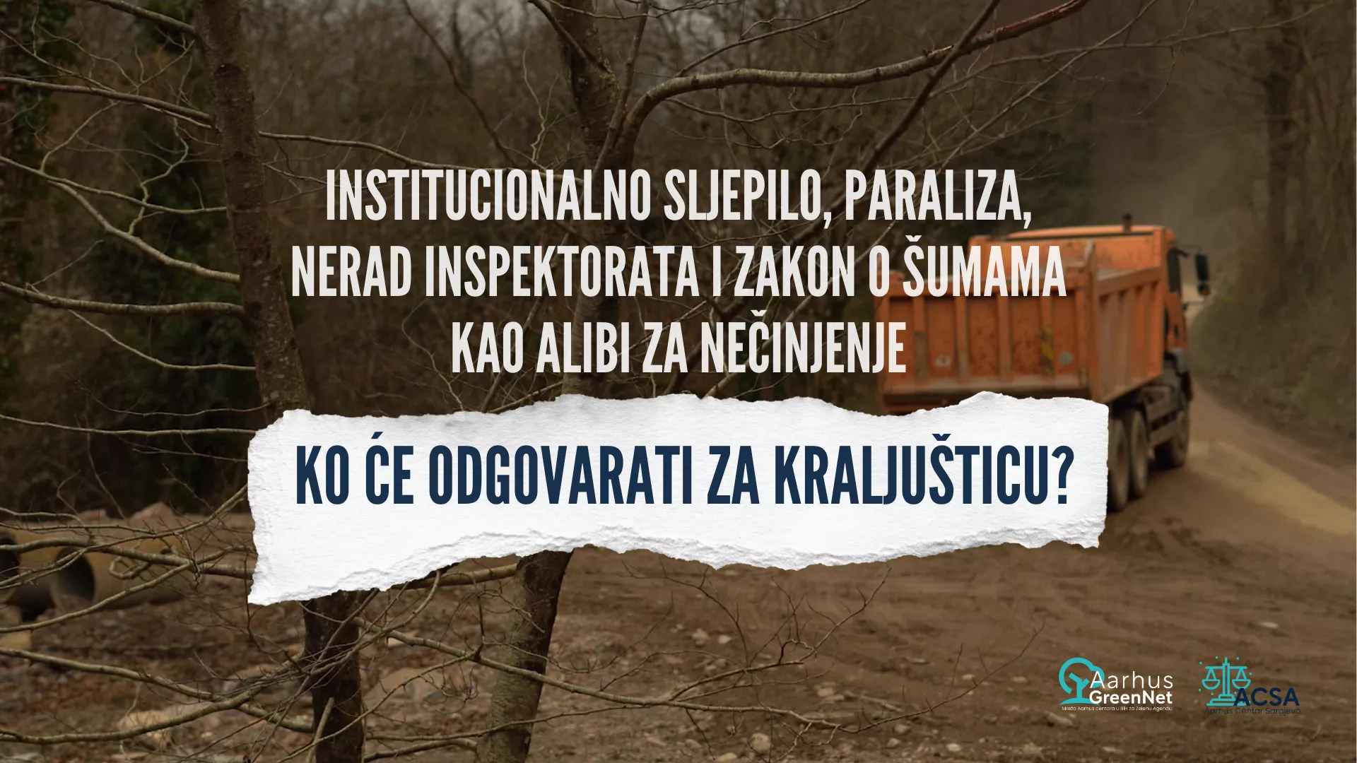 „Kraljuštica i slične rijeke ne smiju postati simbol neuspjeha naše borbe za okoliš. One moraju ostati primjer naše odlučnosti da stanemo u zaštitu prirode i zajedničkog dobra,“ izjavila je Emina Veljović, izvršna direktorica Aarhus centra u BiH. Dodala je: „Inspektorati moraju shvatiti da dozvole nisu bjanko ček za neograničenu eksploataciju prostora. Umjesto da rješavaju stvarne probleme, oni se zadovoljavaju administrativnim odgovorima, omogućujući investitorima da nastave raditi bez odgovornosti. Zbog toga smo prinuđeni zatražiti upravni inspekcijski nadzor od Federalnog ministarstva pravde", rečeno je u analizi.