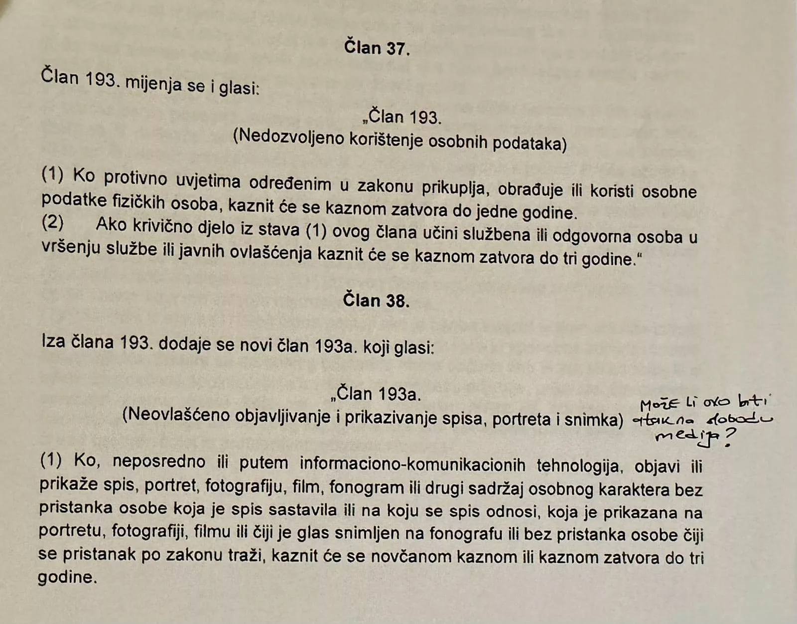 "Da li predložene izmjene i dopune KZ podstiču kriminalitet u FBIH? Prema novim odredbama, neovlašteno objavljivanje spisa, fotografija, filmova ili snimaka bez pristanka osobe može rezultirati novčanom kaznom ili kaznom zatvora do tri godine. Ova formulacija otvara prostor za zloupotrebu, jer može ograničiti novinare i medije u njihovoj ključnoj ulozi – otkrivanju informacija od javnog značaja.