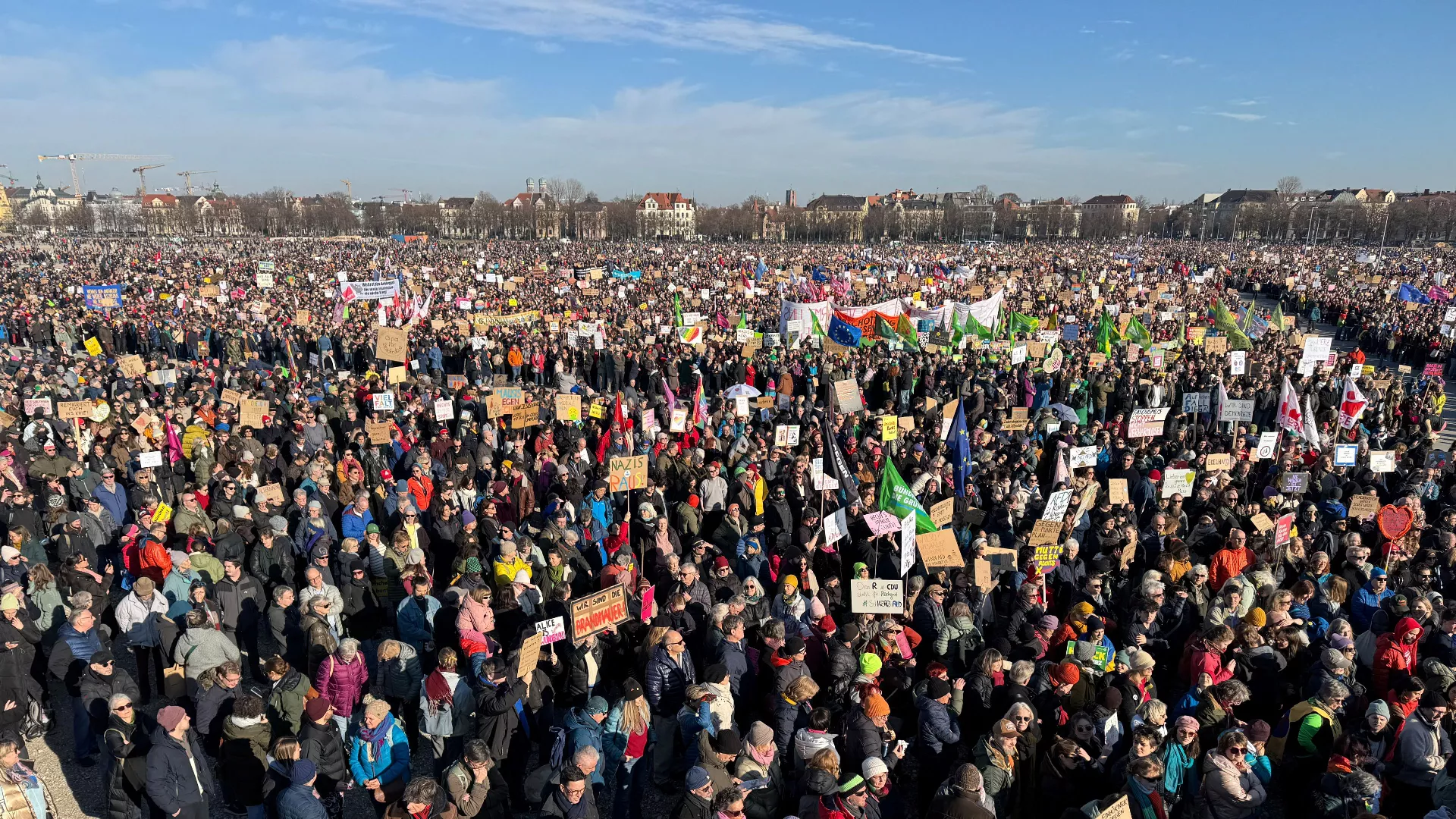 Organizatori događaja procjenjuju da se okupilo više od 320.000 ljudi, od kojih su mnogi nosili natpise protiv AfD-a sa sloganima poput "Rasizam i mržnja nisu alternativa".