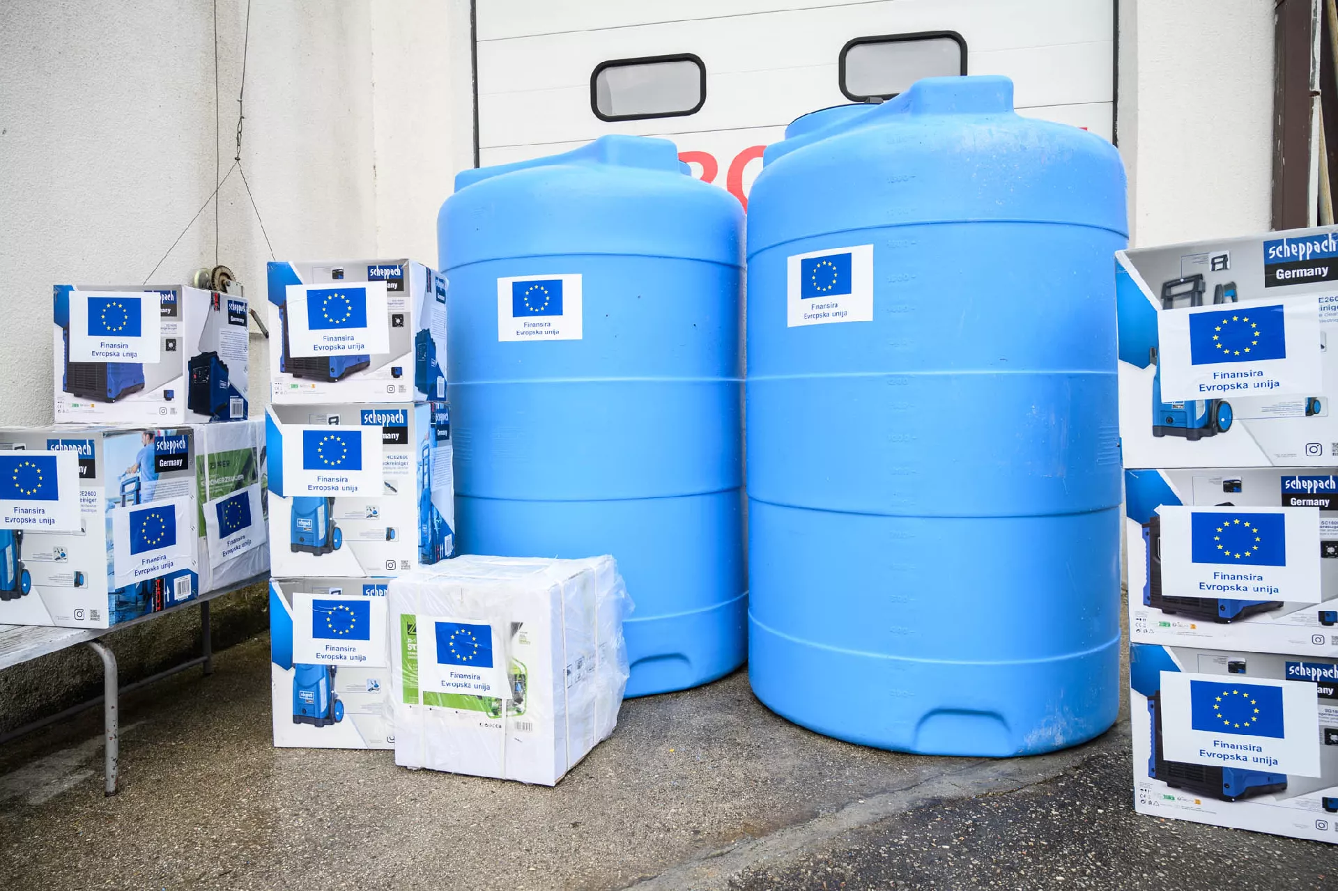 Donirano je 100 rezervoara za vodu, 50 agregata za električnu energiju i 25 perača, a oprema je osigurana kroz projekat "Podrška EU održivom upravljanju vodnim uslugama u BiH", kojeg finsira EU, a provodi UNDP u BiH.