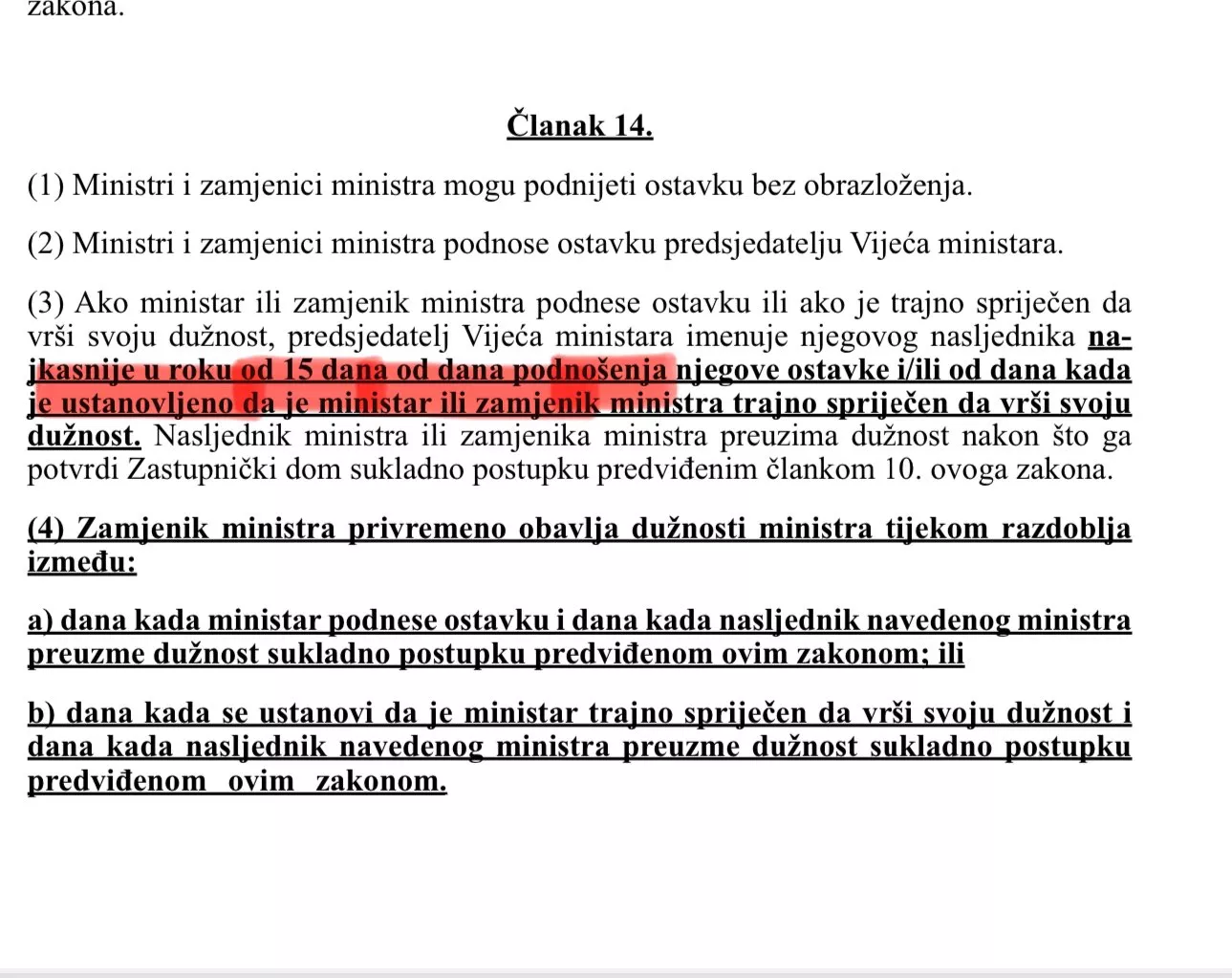Krišto to nije učinila. Bez obzira na to što je prekršila Zakon, nijedna stranka nije pokrenula inicijativu za njeno razrješenje.