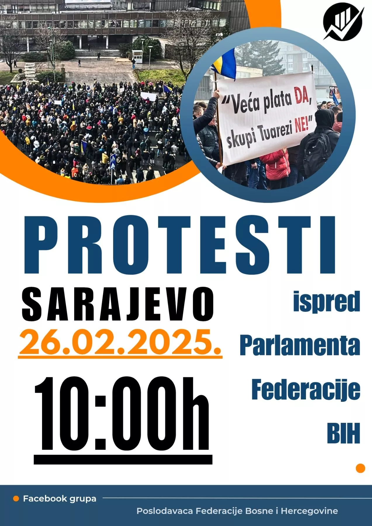 Na Facebook grupi Glas malih biznisa za taj dan je najavljen protest ispred zgrade Parlamenta FBiH.