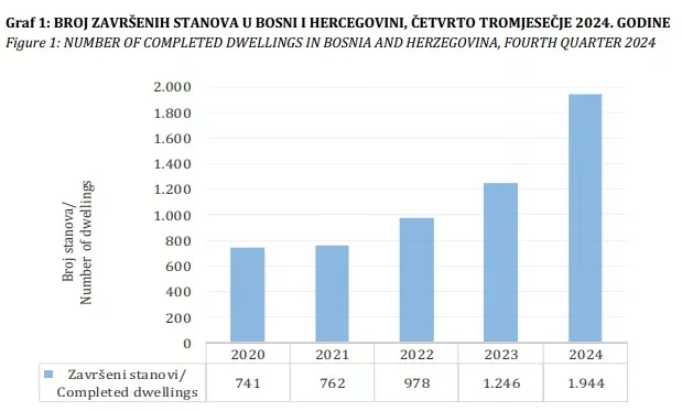 (Patria) - U četvrtom tromjesečju 2024. godine broj završenih stanova u Bosni i Hercegovini iznosio je 1.944.