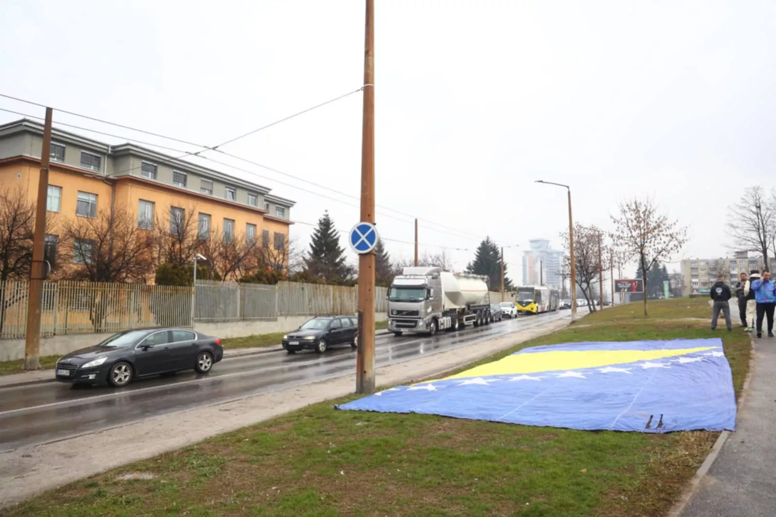 Ispred Suda BiH predstavnici boraca i žrtava su postavili veliku zastavu Bosne i Hercegovine. Podršku su došle iskazati i predstavnice Majki Srebrenice i Žepe Munira Subašić i Kada Hotić.