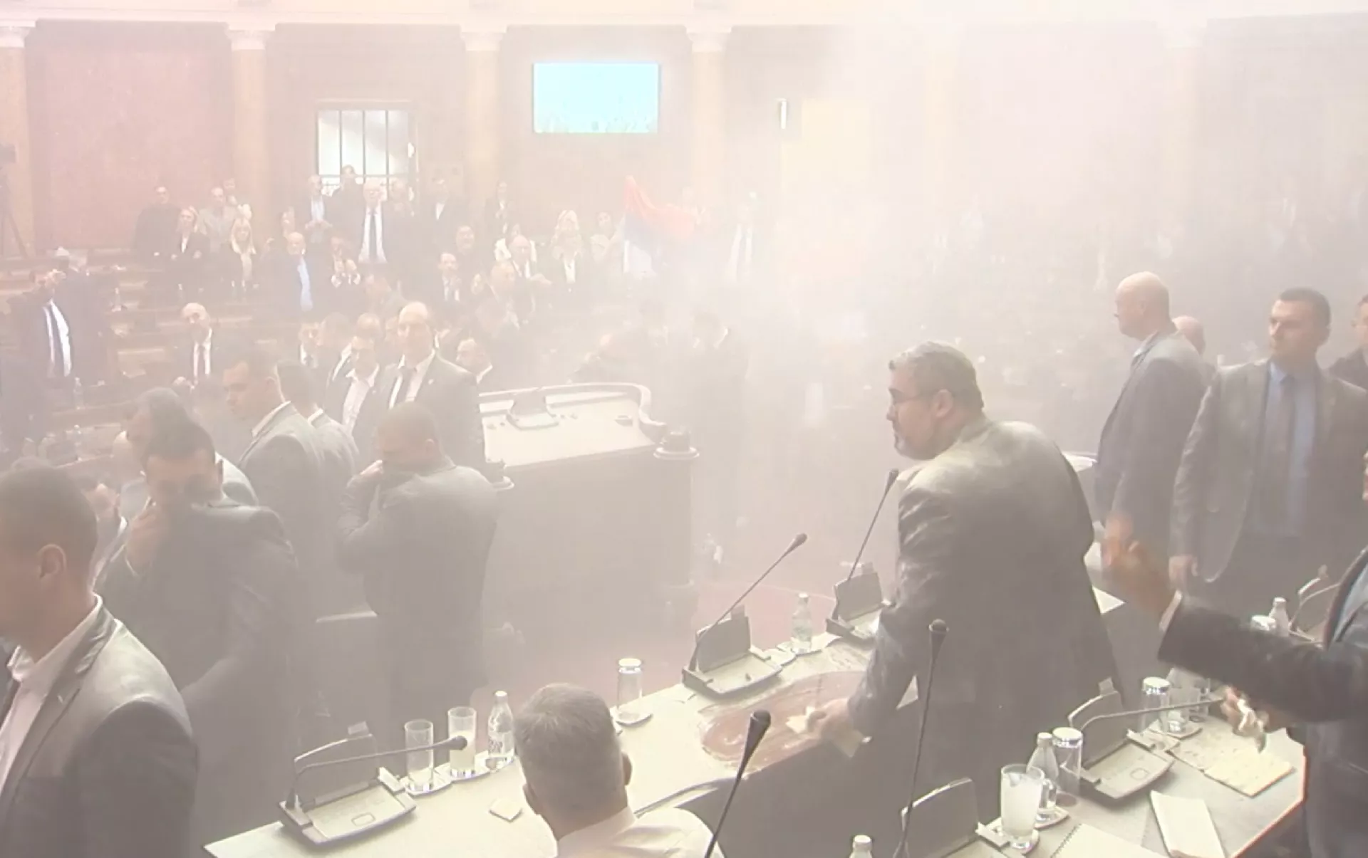 Istakla je da će početi da čiste sat vremena nakon završetka sjednice, zato što Uprava kriminalističke policije mora da uradi uviđaj u sali zbog unošenja pirotehničkih sredstava.