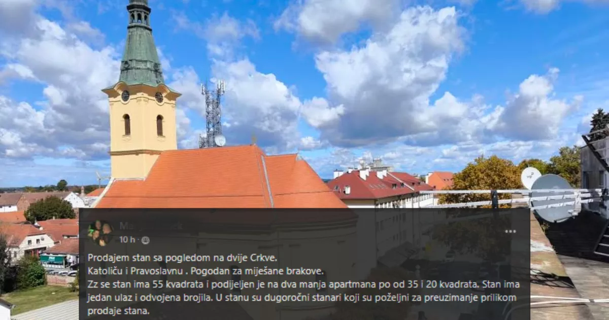 "Prodajem stan s pogledom na dvije crkve, katoličku i pravoslavnu, pogodan za miješane brakove. Stan ima 55 kvadrata i podijeljen je na dva manja apartmana, od 35 i 20 kvadrata.