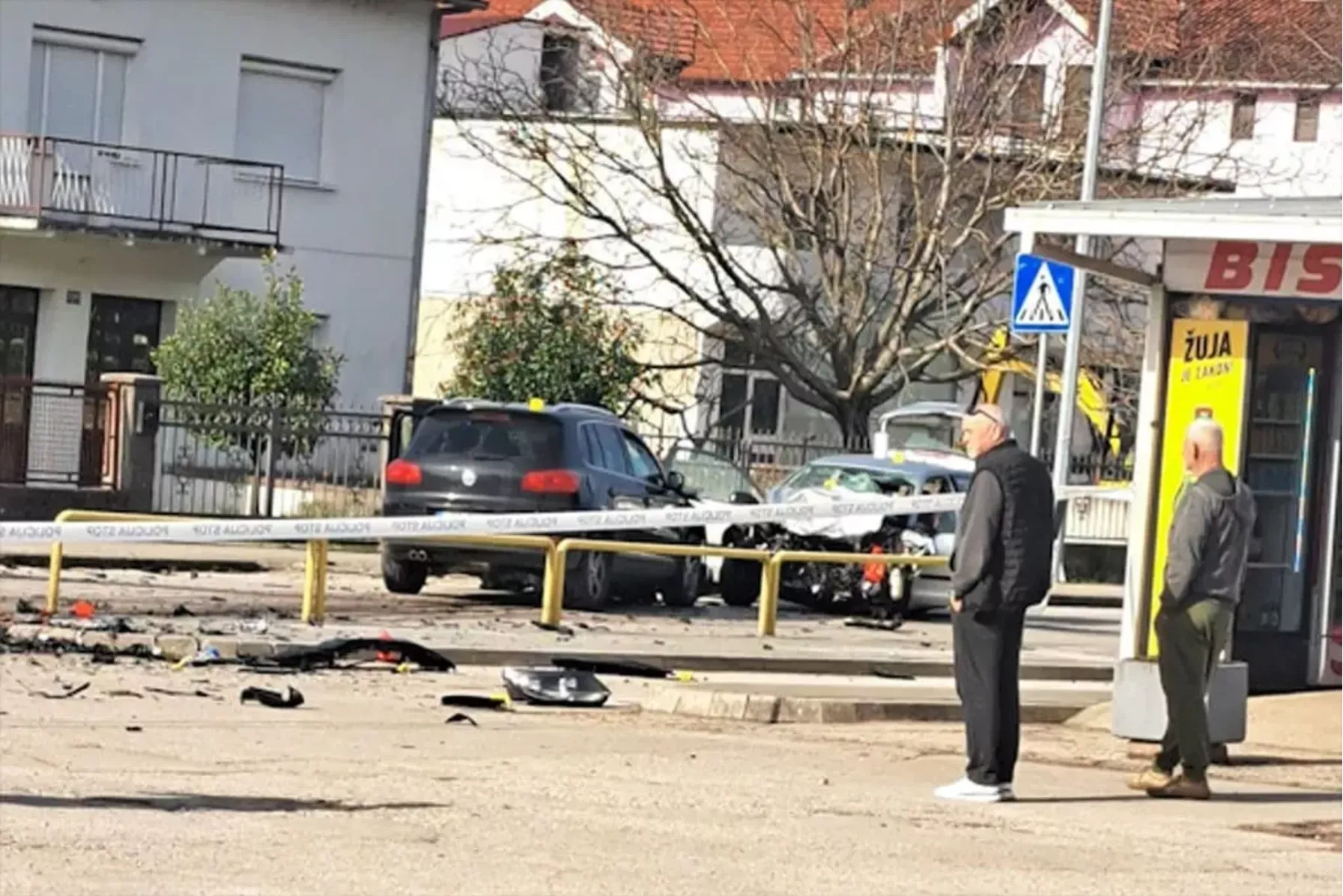 U udesu su učestvovala dva VW vozila. Saobraćaj je na tom dijelu ceste u potpunosti u prekidu do okončanja uviđaja, koji je u toku, i uklanjanja vozila s kolovoza.