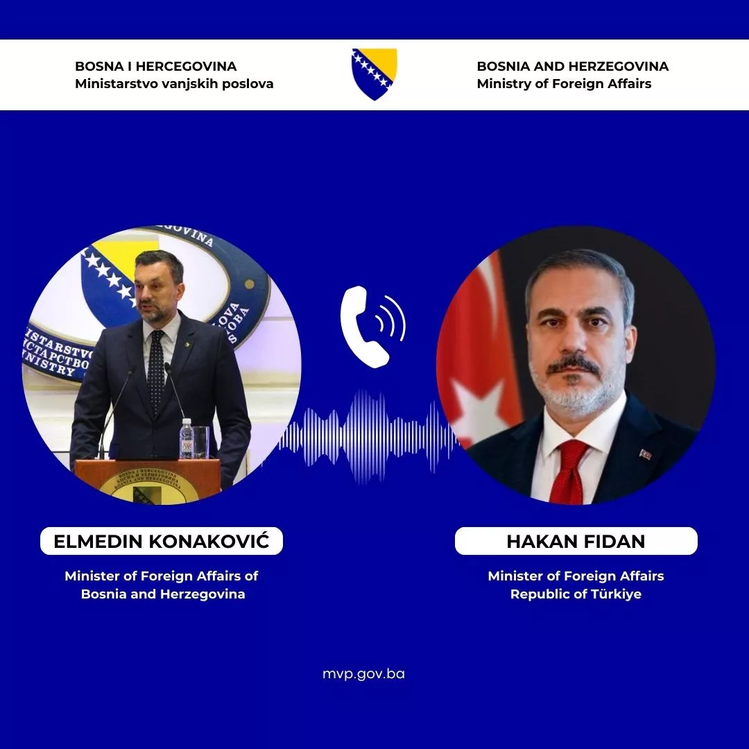 (Patria) - Ministar vanjskih poslova Bosne i Hercegovine, Elmedin Konaković, obavio je danas, 10. marta 2025. godine, telefonski razgovor sa ministrom vanjskih poslova Republike Turske Hakanom Fidanom.