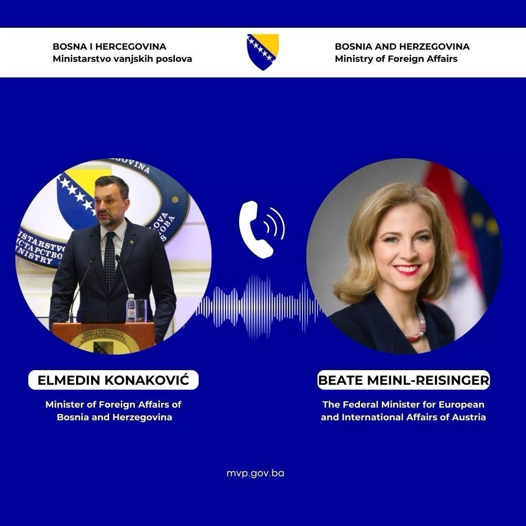 (Patria) - Ministar vanjskih poslova Bosne i Hercegovine Elmedin Konaković obavio je 21. marta 2025. godine telefonski razgovor sa ministricom za europske i međunarodne poslove Republike Austrije Beate Meinl-Reisinger.