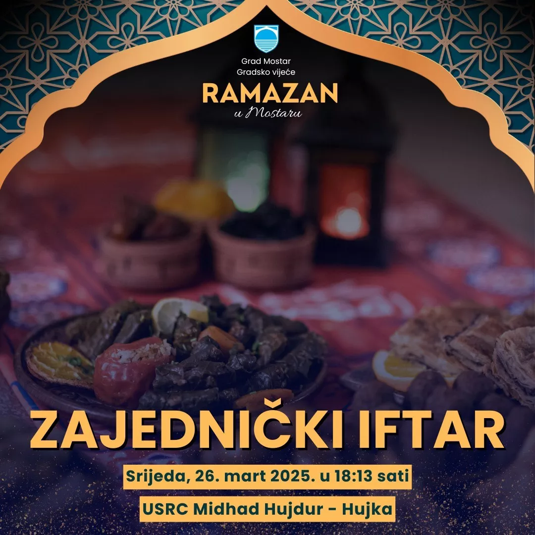 Ovogodišnji zajednički iftar bit će upriličen danas s početkom u 18.13 sati u dvorani USRC "Midhad Hujdur-Hujka".