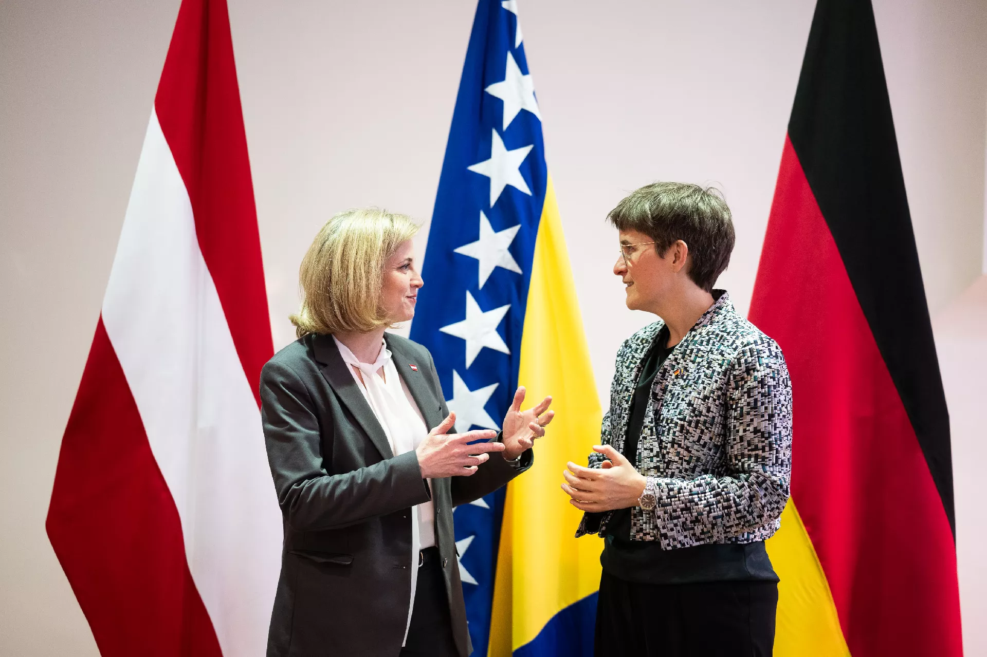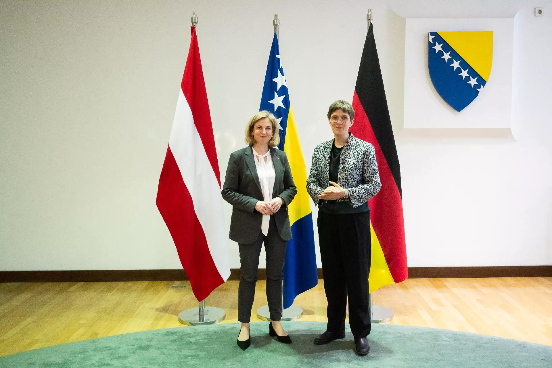 (Patria) - Ministrica vanjskih poslova Austrije Beate Meinl Reisinger i njemačka državna ministrica za Evropu i klimu Anna Lührmann razgovarale su na zajedničkom sastanku u Sarajevu o situaciji u BiH s obzirom na ustavnu krizu izazvanu secesionističkim djelovanjem rukovodstva Rs.