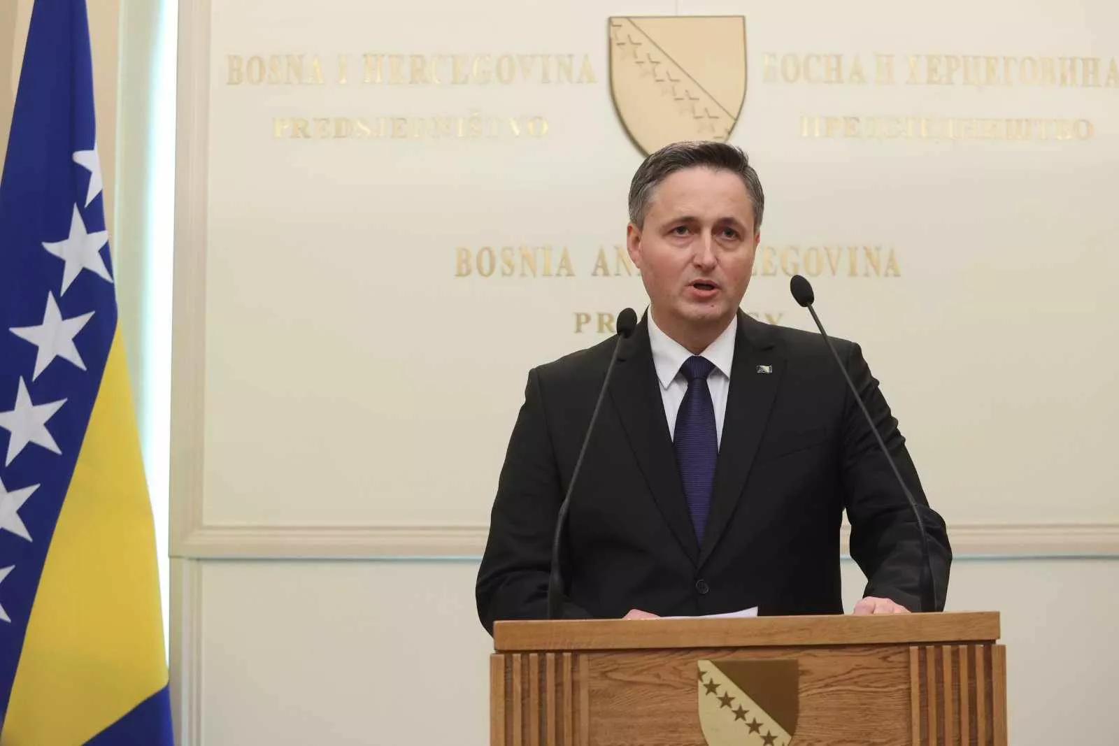 Bećirović je naglasio da se Bosna i Hercegovina suočava s najvećom sigurnosnom prijetnjom od potpisivanja Dejtonskog mirovnog sporazuma. Rekao je da rukovodstvo bh. entiteta RS, na čelu s Miloradom Dodikom, direktno ugrožava Dejtonski mirovni sporazum, ustavni poredak države Bosne i Hercegovine, mir i sigurnost. U tom kontekstu naveo je da je u prošloj sedmici policija bh. entiteta RS zaprijetila oružjem državnim institucijama Bosne i Hercegovine. Takvo postupanje predstavlja napad na ustavni poredak Bosne i Hercegovine, a ima i elemente oružane pobune. Naglasio je da se radi o organiziranim i sistematskim pokušajima podrivanja države Bosne i Hercegovine.