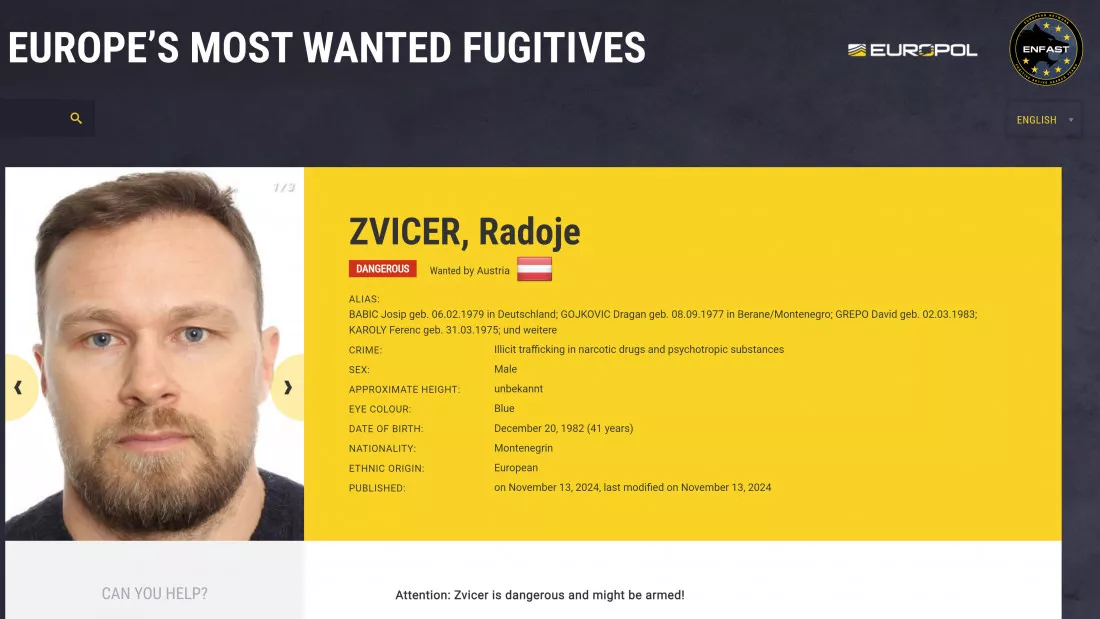 Potjernica je raspisana po zahtjevu Austrije, koja je za Zvicerom ranije objavila nacionalnu potjernicu.