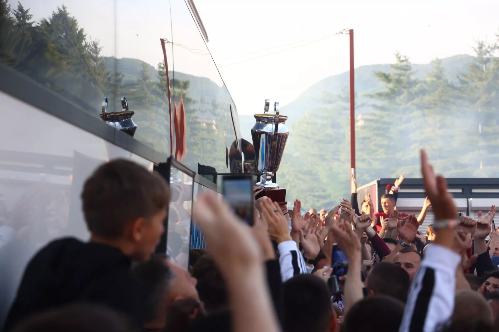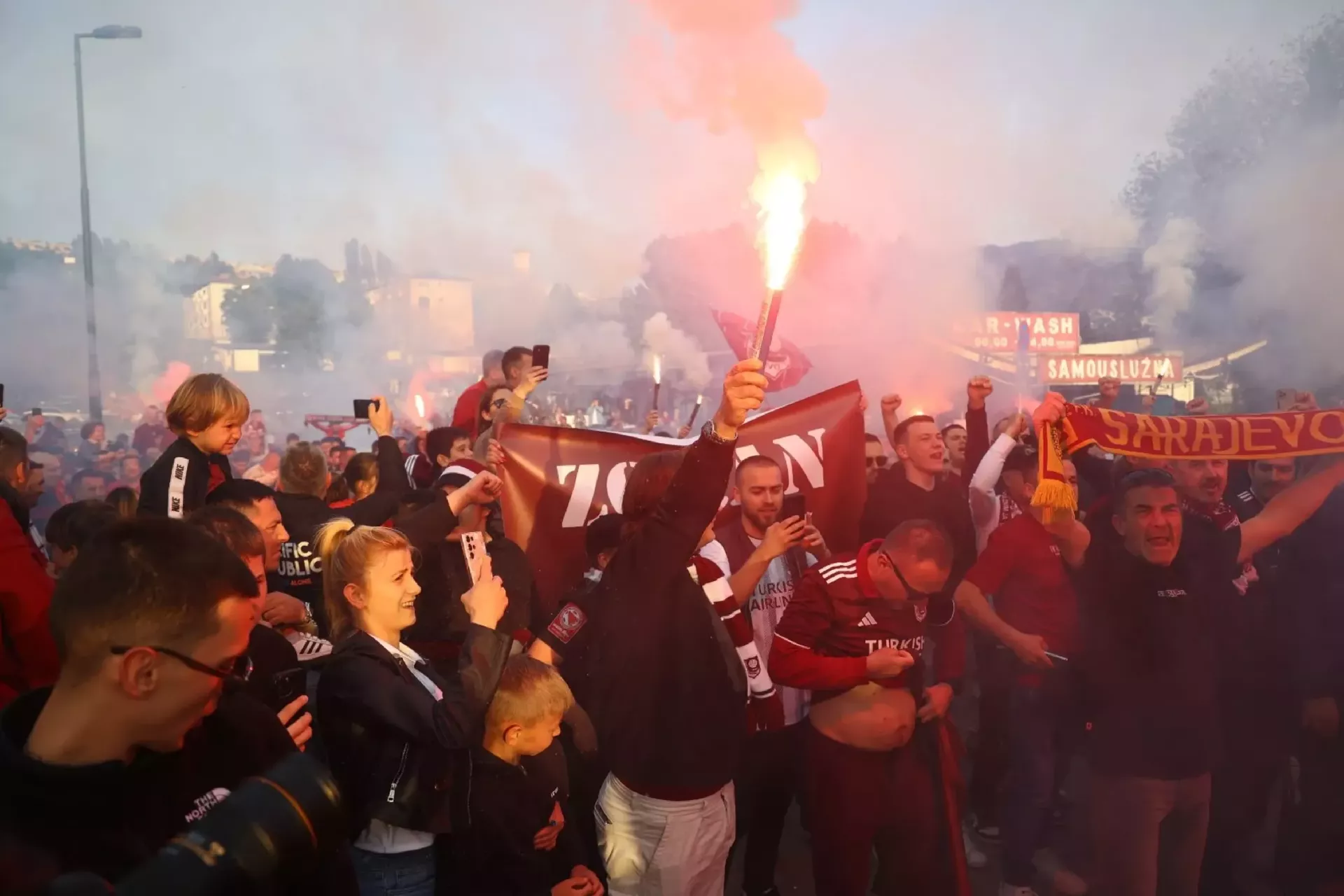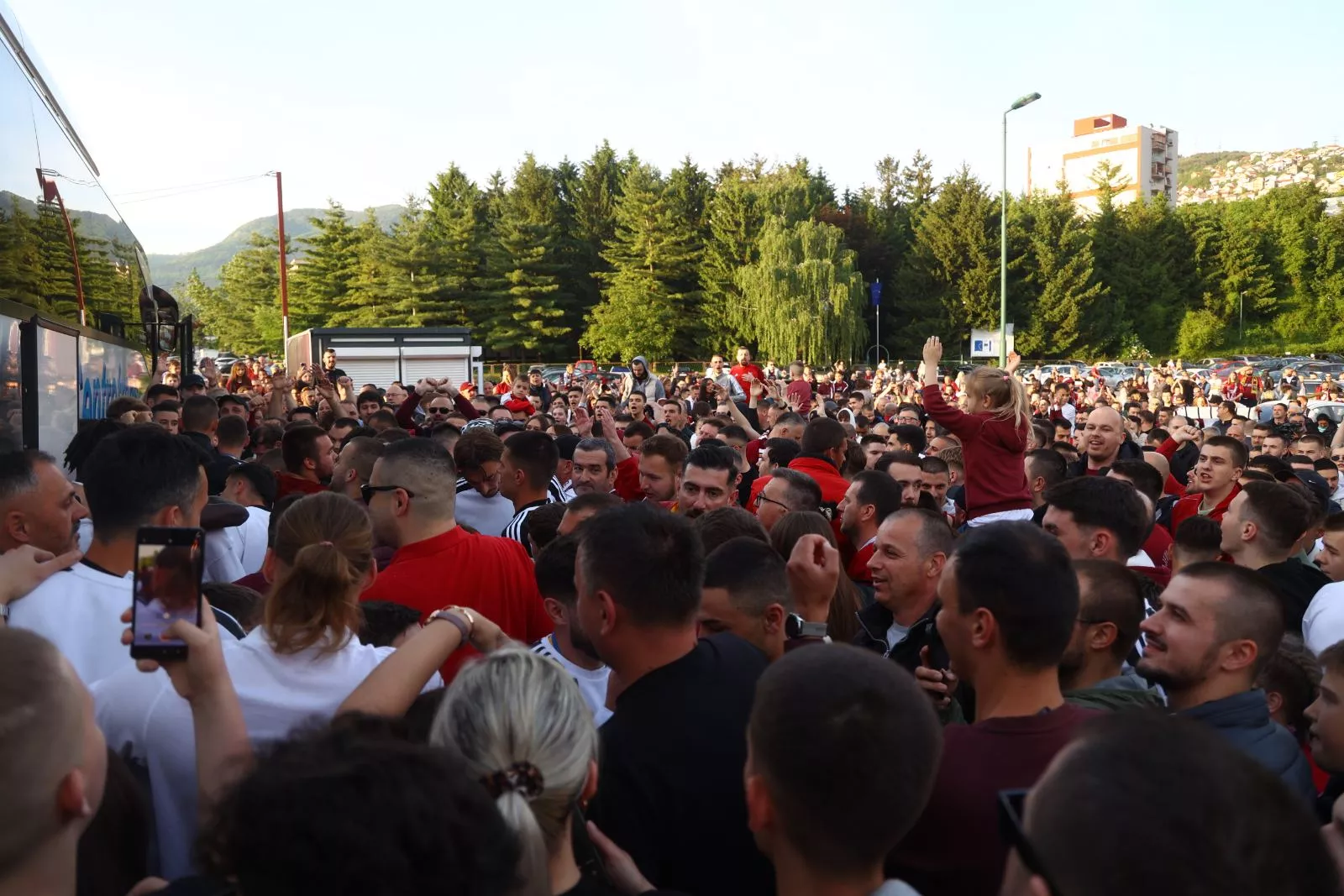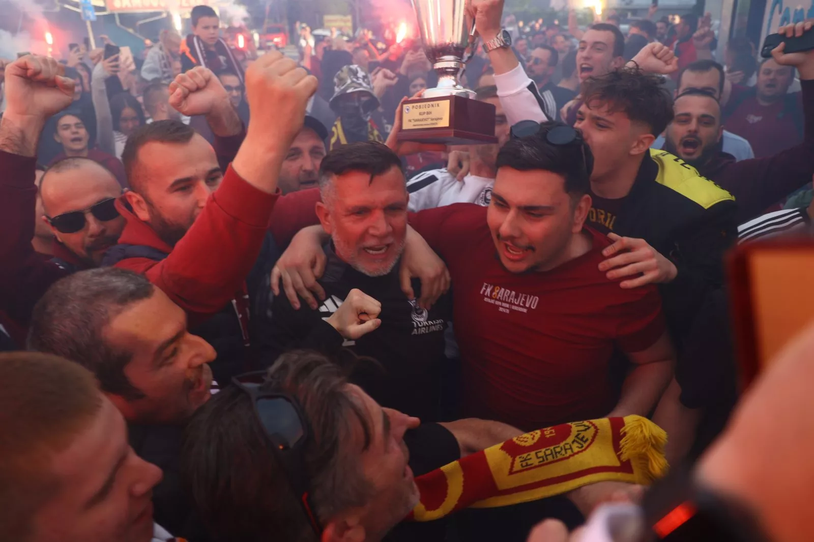 Pred stadionom Koševo dočekali su ih navijači, popularne "Horde zla" te je moglo krenuti veliko slavlje i bakljada.