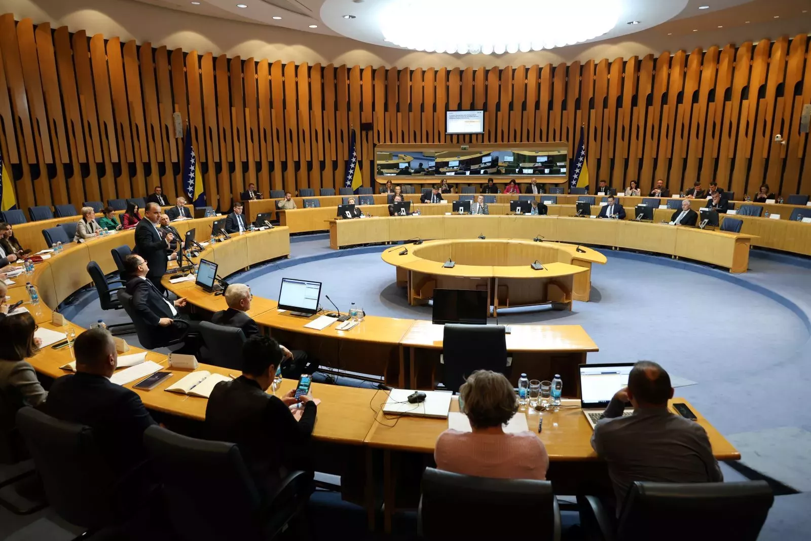 Trebao bi biti razmatran i zahtjev Zastupničkog doma Parlamenta BiH da se Prijedlog zakona o izmjenama Zakona o finansiranju institucija BiH razmatra po hitnom postupku.