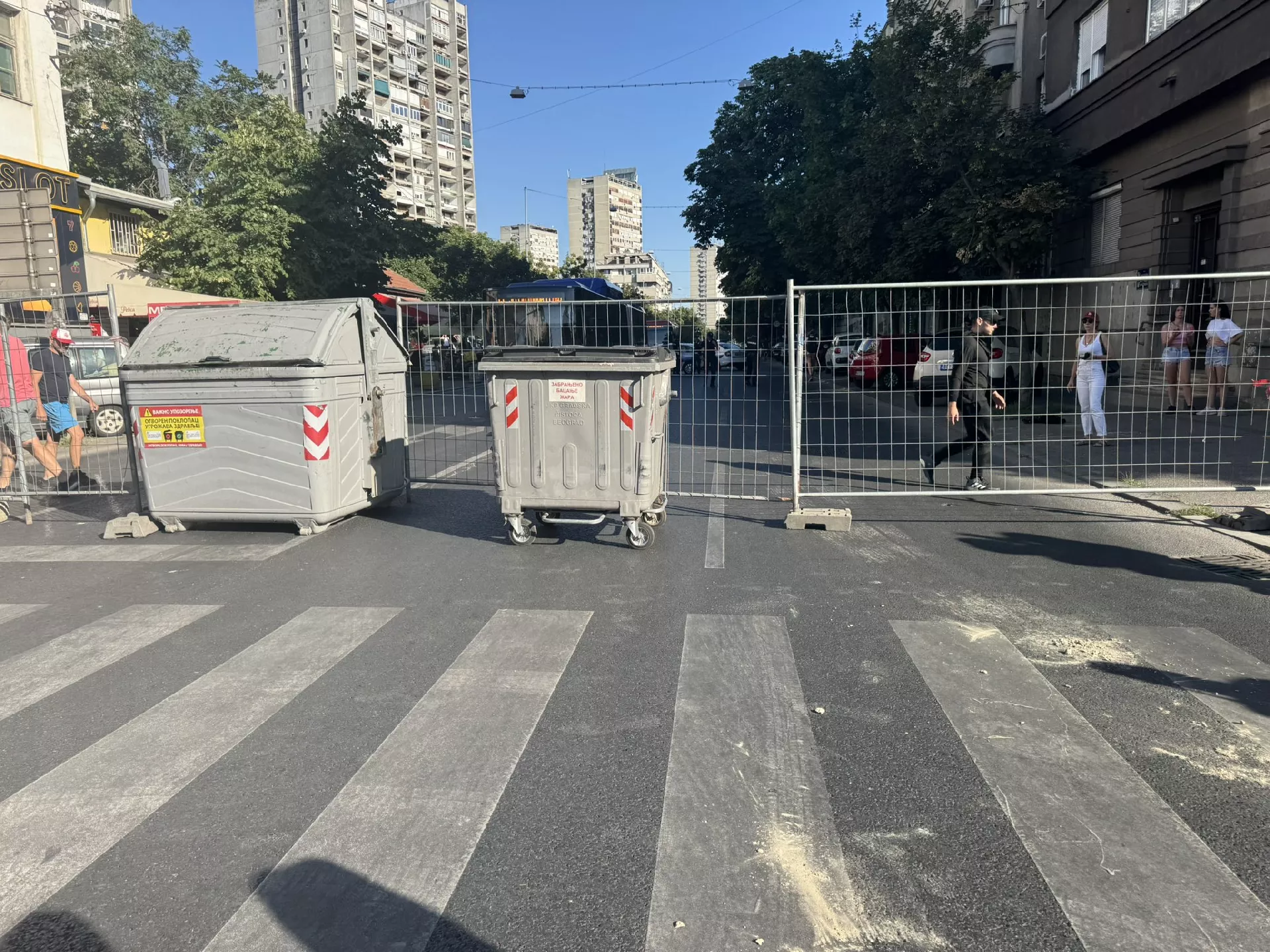 Na fotografijama se jasno vidi da su nasred puta ove beogradske opštine postavljeni kontejneri i ograde.