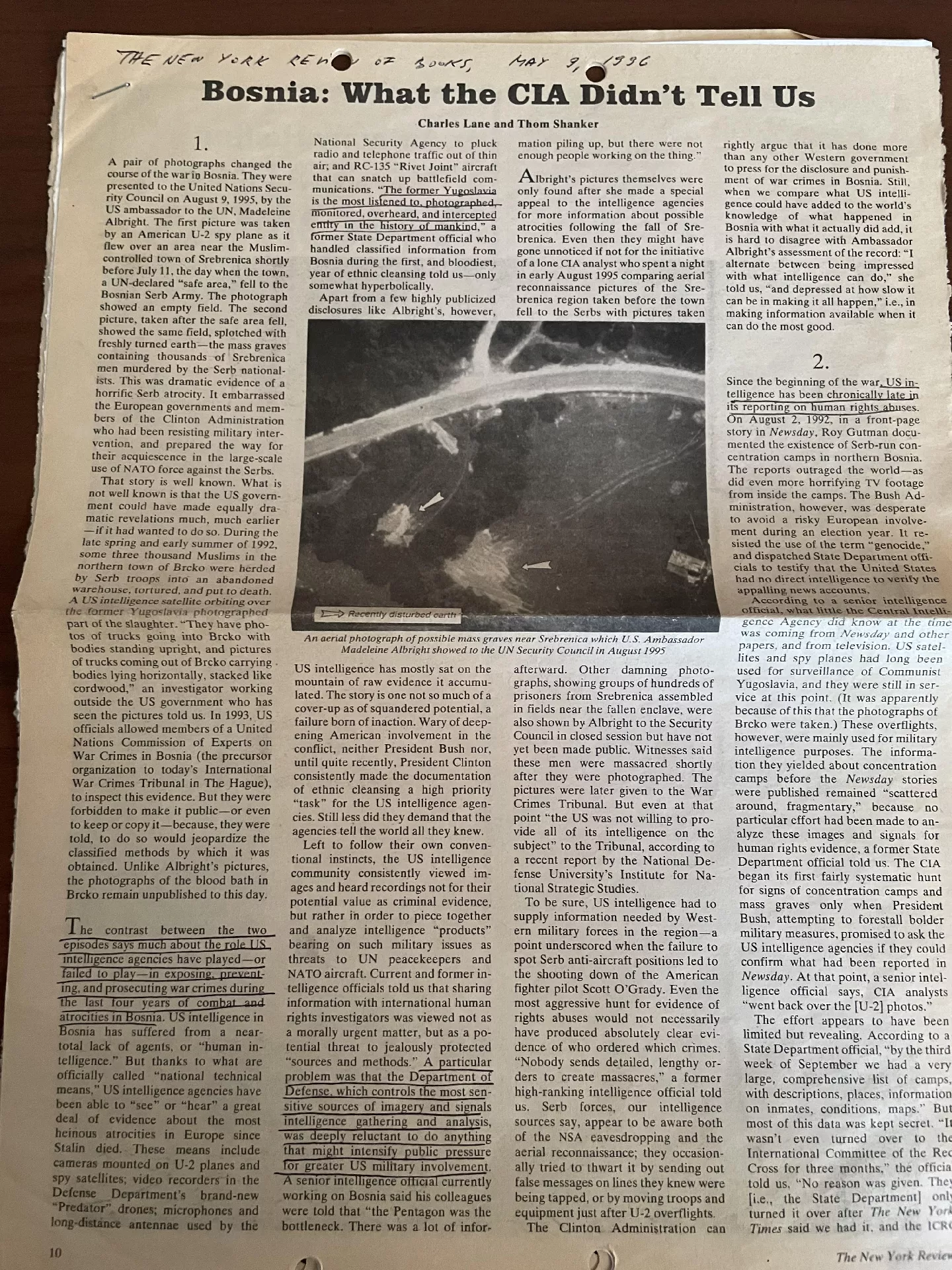 Naglasio je da su krunski dokaz tome svjedočenja samih insajdera iz CIA-e koja nalazimo u jednom davnom i zaboravljenom tekstu od 11. aprila 1996. koji je objavljen u Pregledu New York Timesa pod naslovom “Bosna: Šta nam CIA nije rekla”.