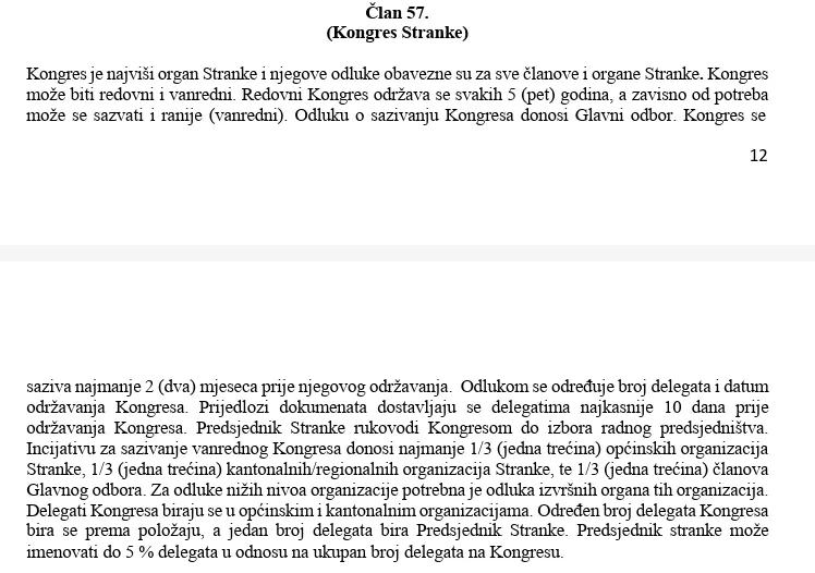 Statut predviđa da inicijativu za sazivanje vanrednog Kongresa donosi najmanje 1/3 (jedna trećina) općinskih organizacija stranke, 1/3 (jedna trećina) kantonalnih/regionalnih organizacija stranke, te 1/3 (jedna trećina) članova Glavnog odbora.