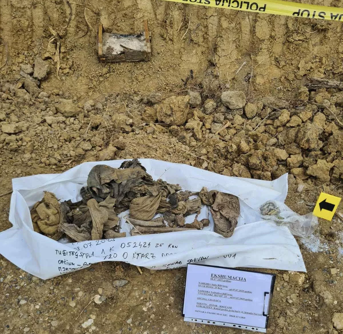 Posmrtni ostaci žrtve nakon ekshumacije prebačeni su u Komemorativni centar u Tuzli gdje će uslijediti njihova kriminalističko - tehnička i sudsko - medicinska obrada, te izuzimanje koštanih uzoraka sa ciljem identifikacije žrtve uz pomoć DNK metode.