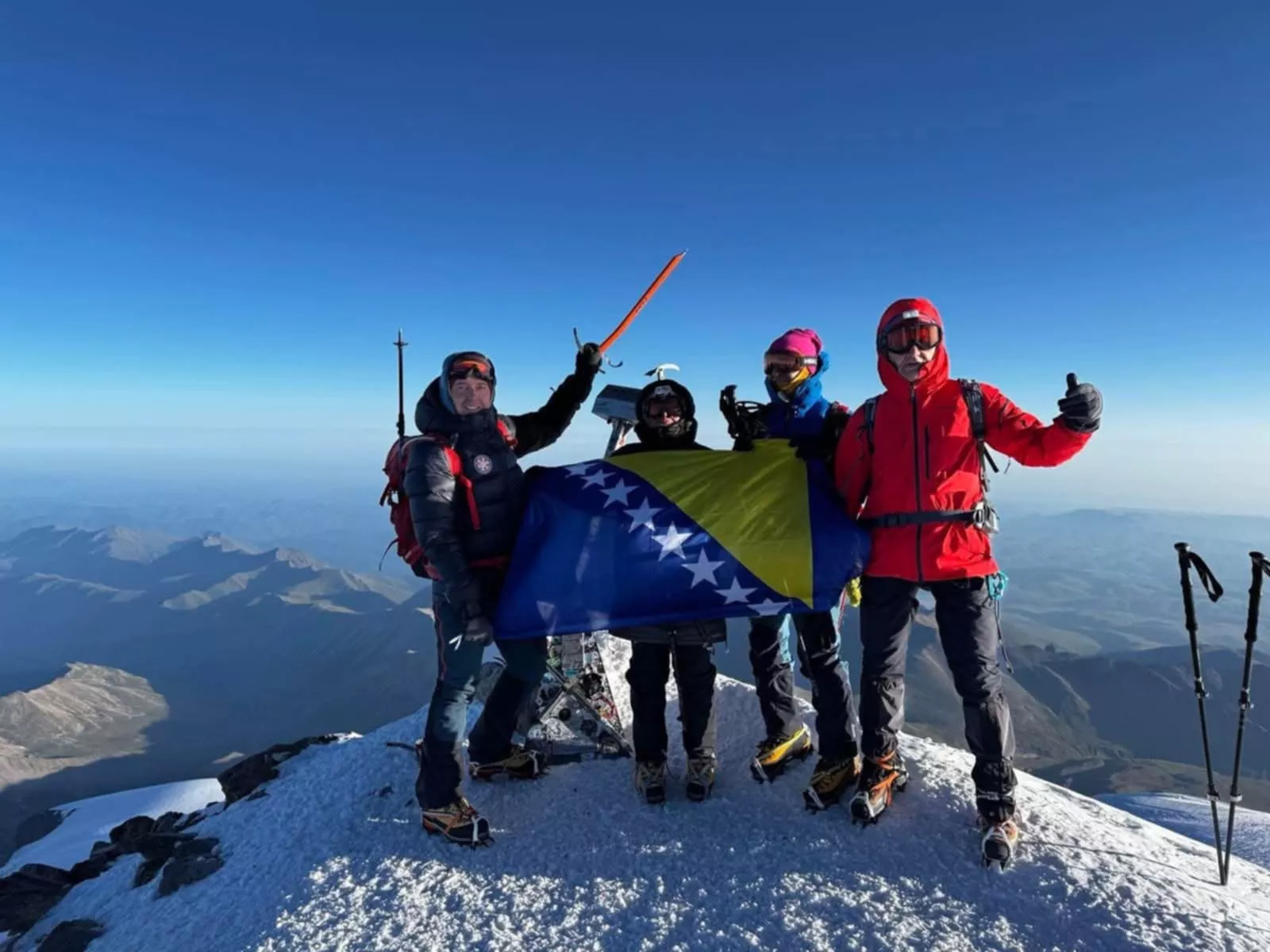 Četveročlani tim uposlenika Mašinskog fakulteta Univerziteta u Sarajevu - Adisa Dževlan, prof. dr. Hazim Bašić, prof. dr. Dževad Bibić i prof. dr. Marin Petrović - uspješno je realizovao uspon na planinu Elbrus, najviši vrh Rusije i Evrope.