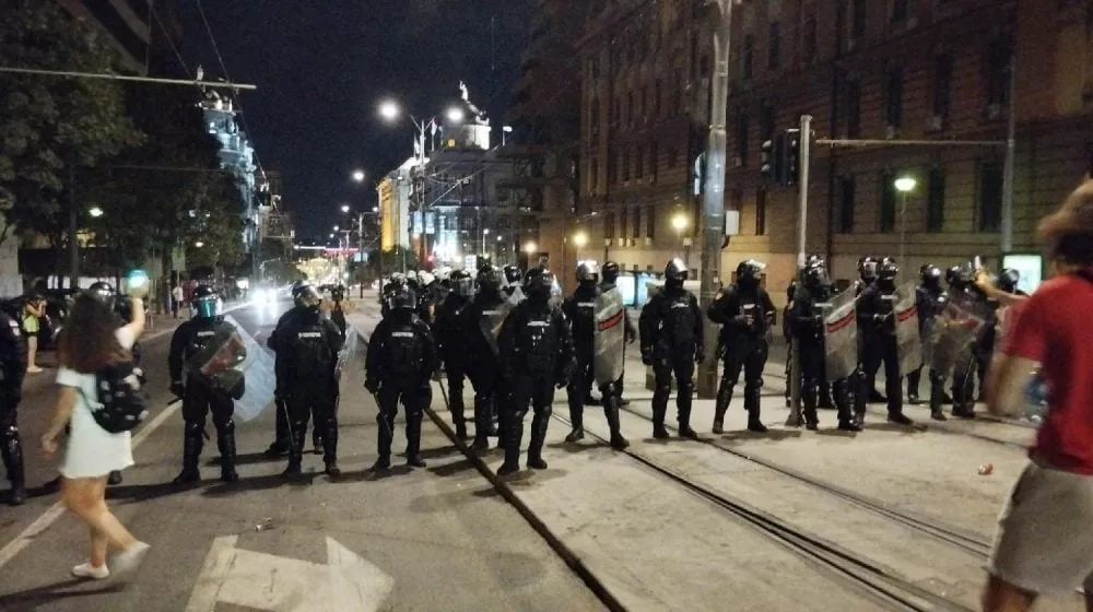Veliki kordoni policije razdvajaju građane koji protestuju mjesecima i SNS-ove pristalice koji su tokom prethodnih dana izazivali brojne nerede i napadali građane raznim predmetima.