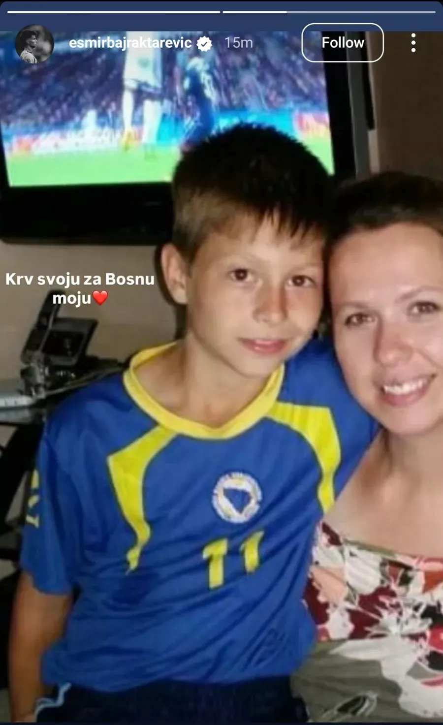 Ipak, druga je naišla na mnogo ljepše reakcije. Bajraktarević je objavio fotografiju u kojoj kao dječak nosi dres Bosne i Hercegovine.