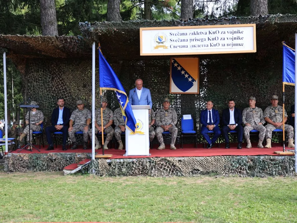 (Patria) - Ministar odbrane Bosne i Hercegovine Zukan Helez prisustvovao je svečanoj ceremoniji povodom završetka obuke kandidata za prijem u profesionalnu vojnu službu u OS BiH u početnom činu vojnika, koja je održana u Centru za osnovnu obuku na lokaciji kasarne „Zaim Imamović“- Pazarić, u petak 29. augusta 2025. godine.