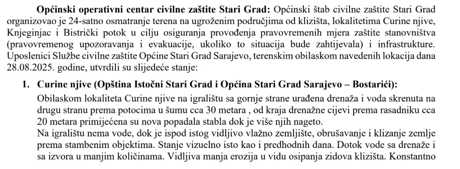 Pozivamo sve nadležne institucije — Općinu Stari Grad Sarajevo, Općinu Istočni Stari Grad, Kanton Sarajevo, Vladu FBiH i Vladu RS — na hitnu, koordiniranu, terensku akciju: